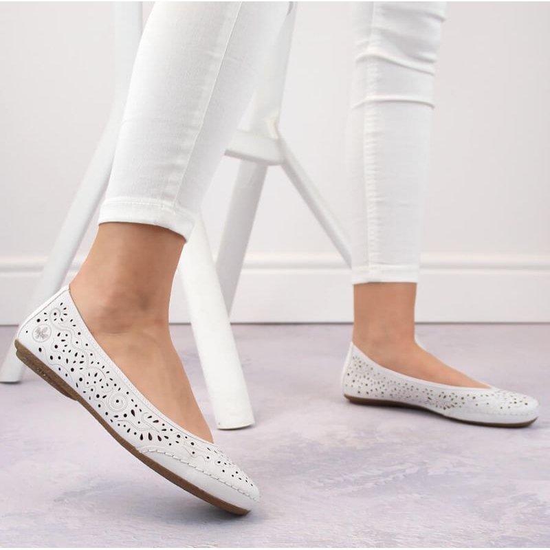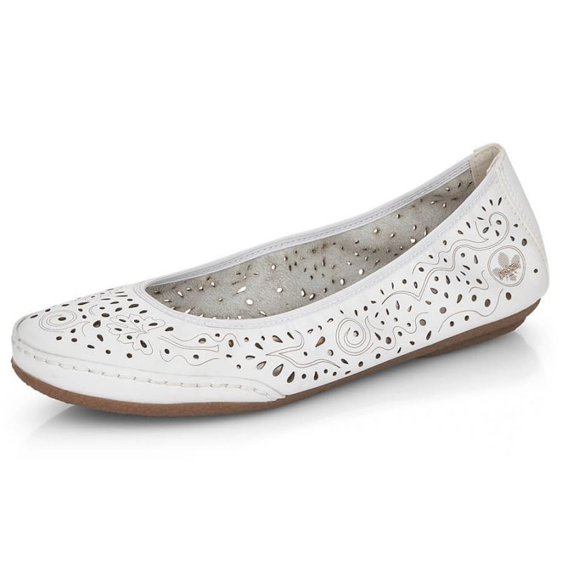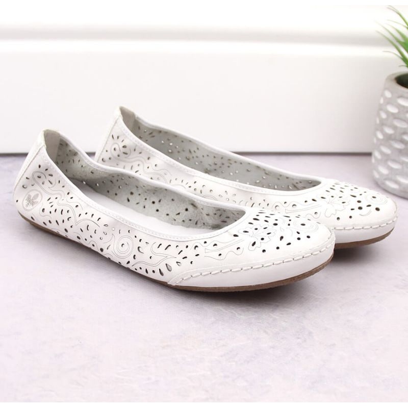 Rieker Zapatos cómodos de piel calados Rieker W RKR649, blanco