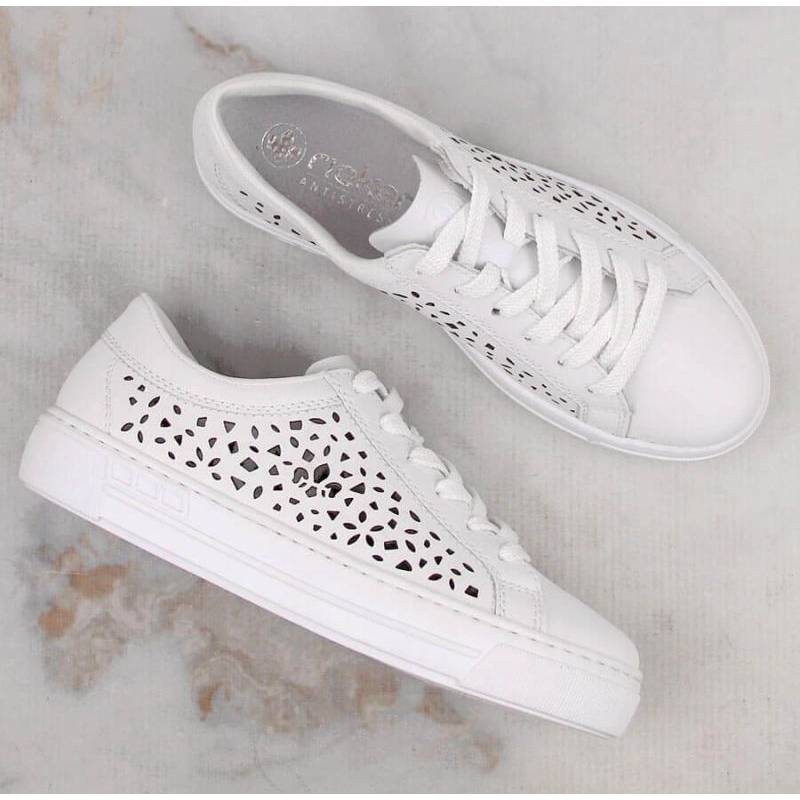 Zapatos cómodos de piel Rieker W RKR641 blanco