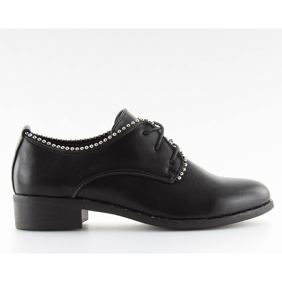 Mocasines bien formados. Una combinación de clásicos atemporales con acentos de rock moderno: cuentas de plata y tachuelas alrededor de la suela. Gracias a los cordones, se adaptan perfectamente al grosor del pie. Mirada muy delgada en la pierna, y al mismo tiempo son increíblemente cómodas. Están hechas de cuero ecológico brillante.