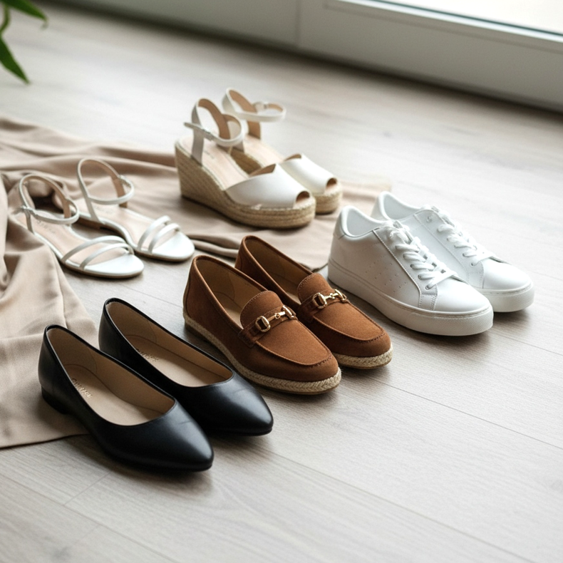 Es mejor usar zapatos cómodos pero elegantes con pantalones palazzo todos los días. Si prefieres la comodidad, elige bailarinas con puntera puntiaguda o mocasines. Estos modelos clásicos complementarán perfectamente tu estilo diario y te harán lucir elegante sin sacrificar la comodidad.