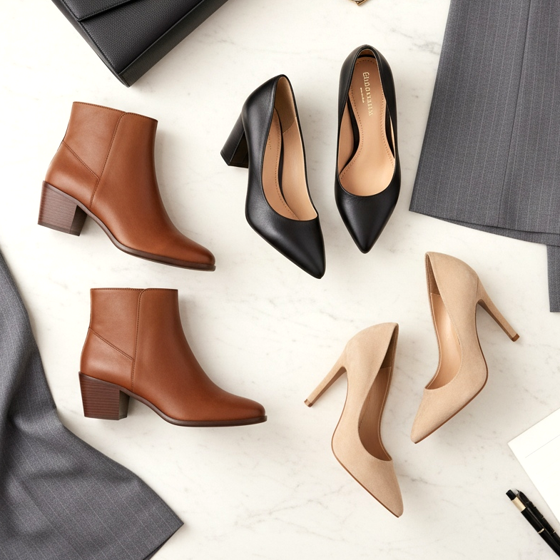 Los zapatos en colores neutros (negro, beige o marrón) también son una solución segura. Estos colores combinan con la mayoría de los estilos y funcionarán bien tanto en la oficina como en el día a día.