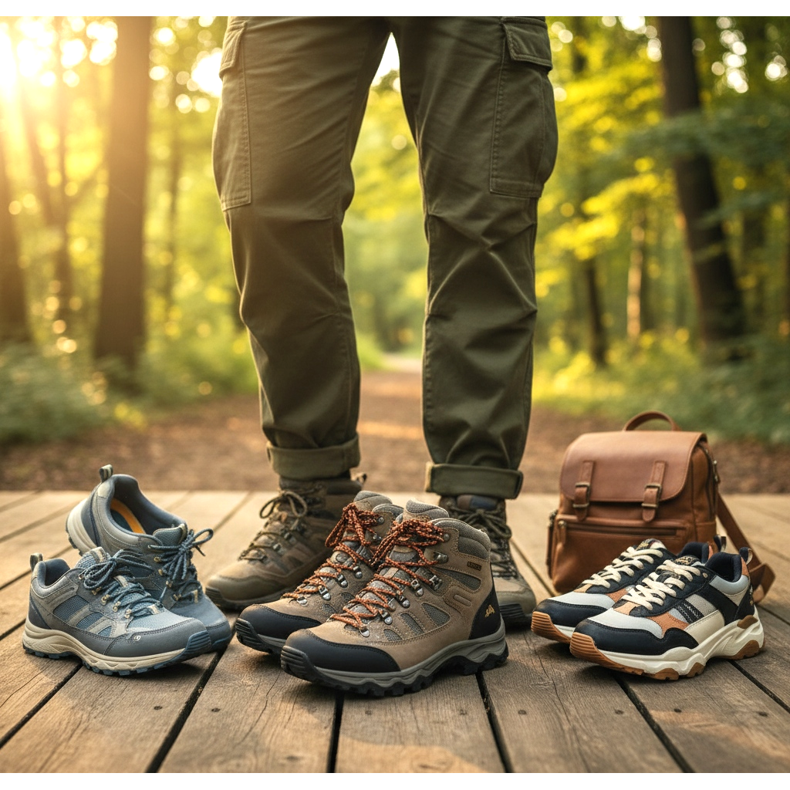 Los zapatos de trekking combinan perfectamente con los pantalones cargo para realizar actividades, ya que brindan una tracción y estabilidad adecuadas. Puede elegir entre varios modelos, desde los más ligeros e informales hasta los zapatos de trekking profesionales más pesados.