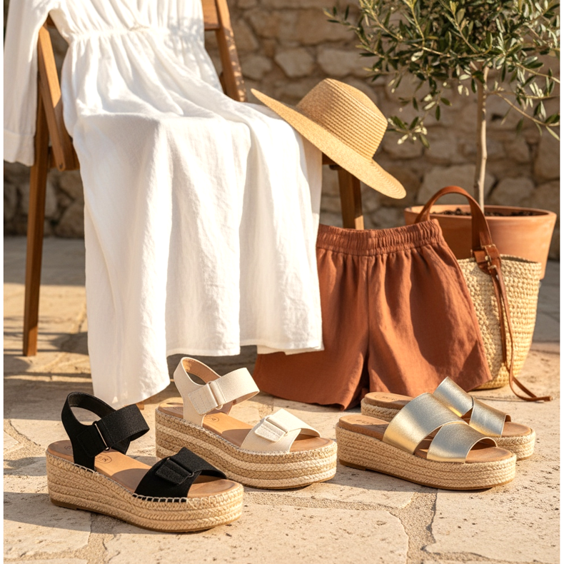 Las chanclas de plataforma con suela de cuero o yute son un clásico absoluto de la primavera-verano. Son cómodos, ligeros y quedan fenomenal con vestidos largos, pantalones de lino y shorts. Una ventaja adicional son las correas ajustables que te permiten adaptar los zapatos con precisión a la forma de tu pie.