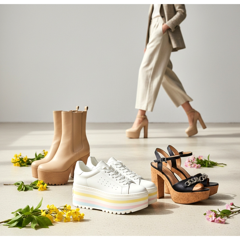 La plataforma primavera 2026 no es sólo una elección de moda, sino sobre todo un estilo de vida. Zapatillas, sandalias y botas con suela distintiva regresan en versiones renovadas y modernas. Descubra qué modelos dominan y cómo crear estilos en torno a zapatos con plataforma.