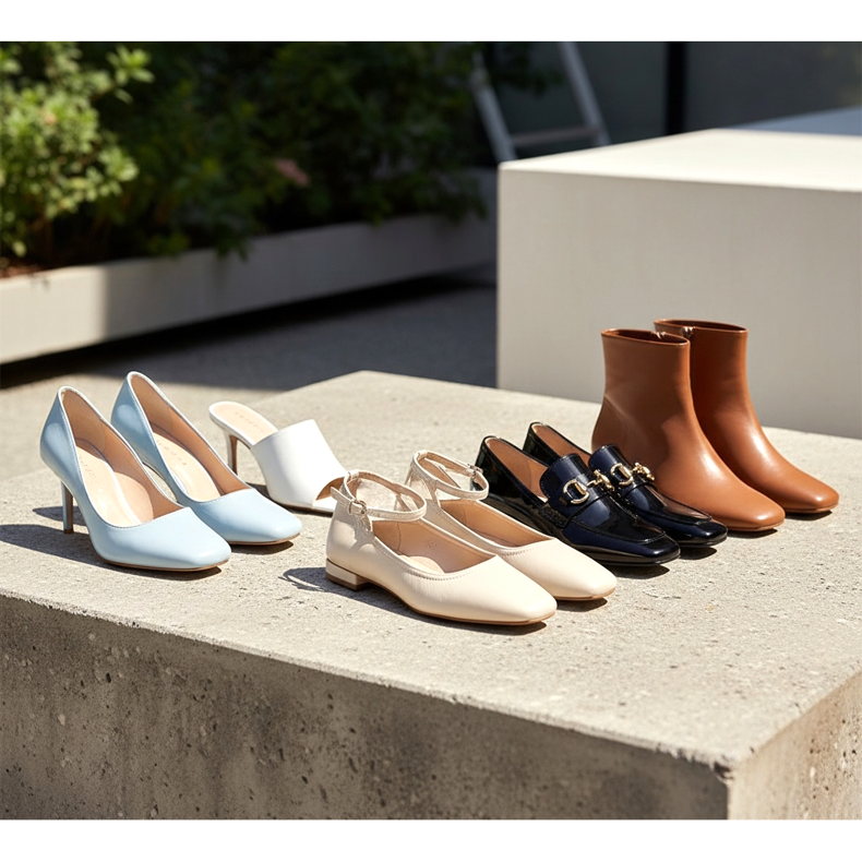 La punta cuadrada estará presente en prácticamente todas las categorías de calzado femenino en 2026. Se puede encontrar con mayor frecuencia en: