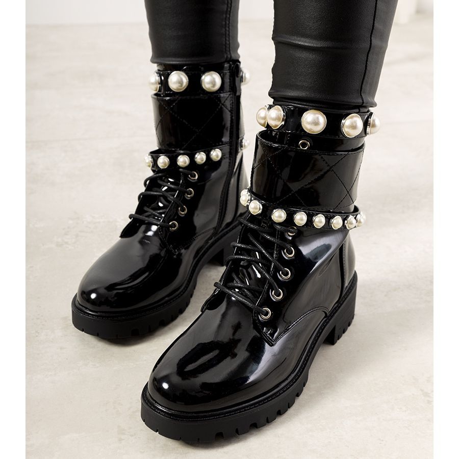 Además, el diseño único hace que estas botas sean llamativas y complementen perfectamente cualquier estilo. El acabado en charol negro seguramente se convertirá en tu prenda favorita para la próxima temporada. ¡No esperes más y elige moda y comodidad con los botines Corso!