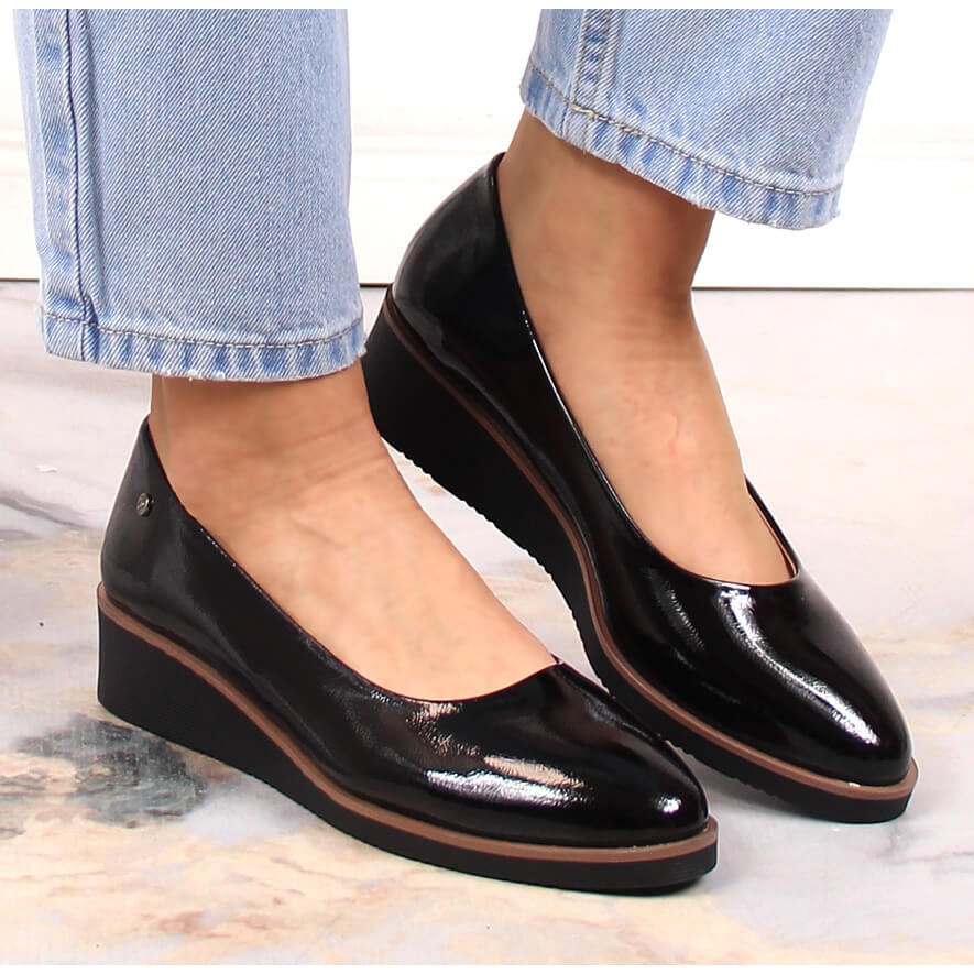 Detalles: Zapatos cuña mujer lacado negro Vinceza 10865