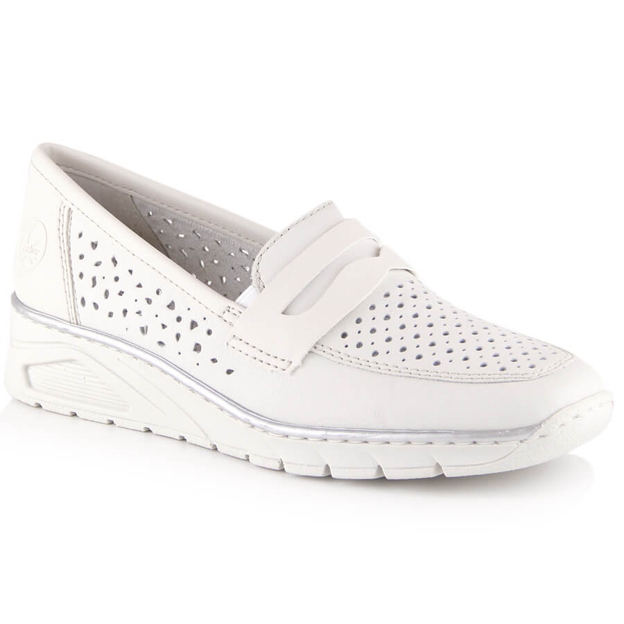 Rieker Zapatos cuña mujer piel calada Rieker N3356-80 blanco