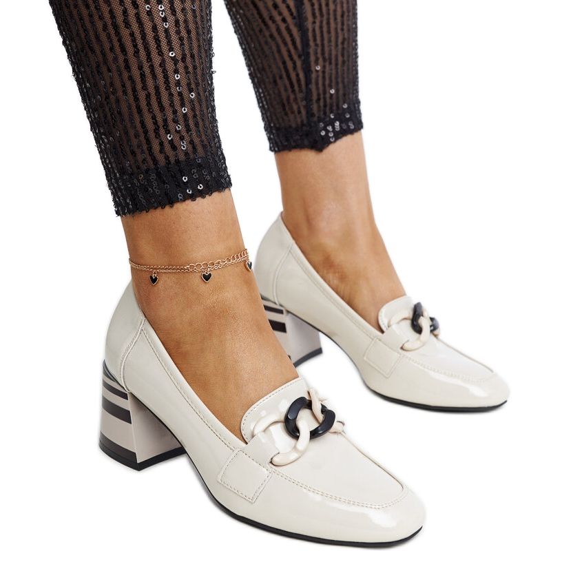 Gracias a la punta redonda y al diseño bajo, estos zapatos sin cordones serán una excelente opción para el uso diario, independientemente de la ocasión. La altura del tacón de 5,5 cm los hace perfectos para mujeres que valoran tanto la comodidad como un estilo ligeramente más alto. Una ventaja adicional es una atractiva cadena que les da un toque de moda.
