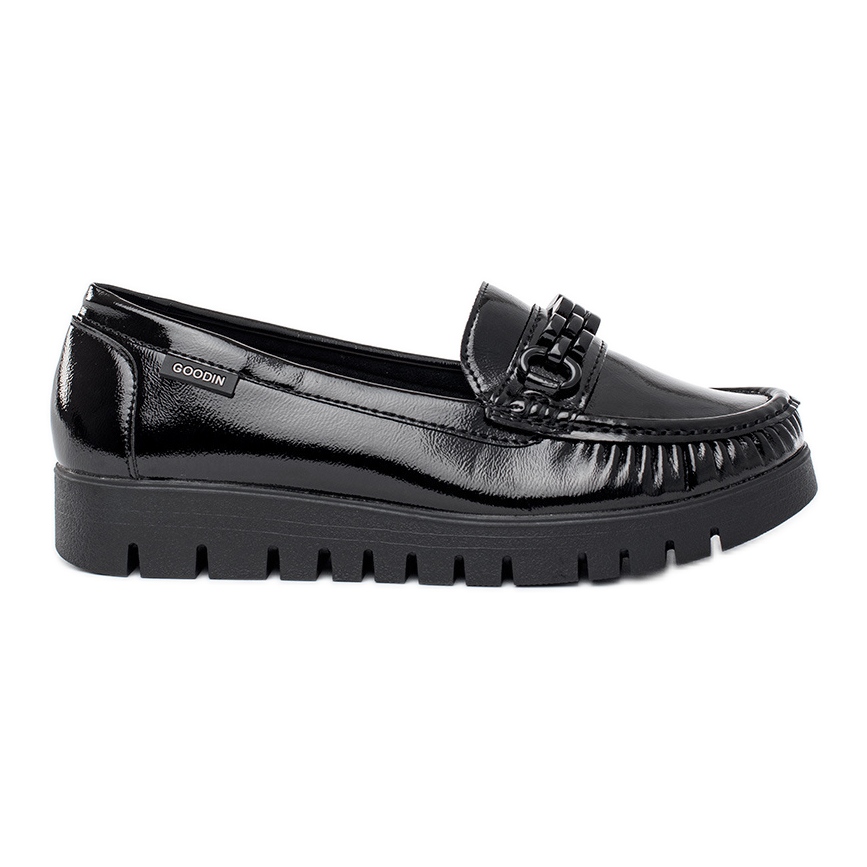 Descubra el último modelo de medios manchos de mujeres barnizadas de Goodin, que combinan comodidad y diseño moderno. Estos elegantes zapatos negros en una suela gruesa serán el complemento perfecto para cada estilización diaria.