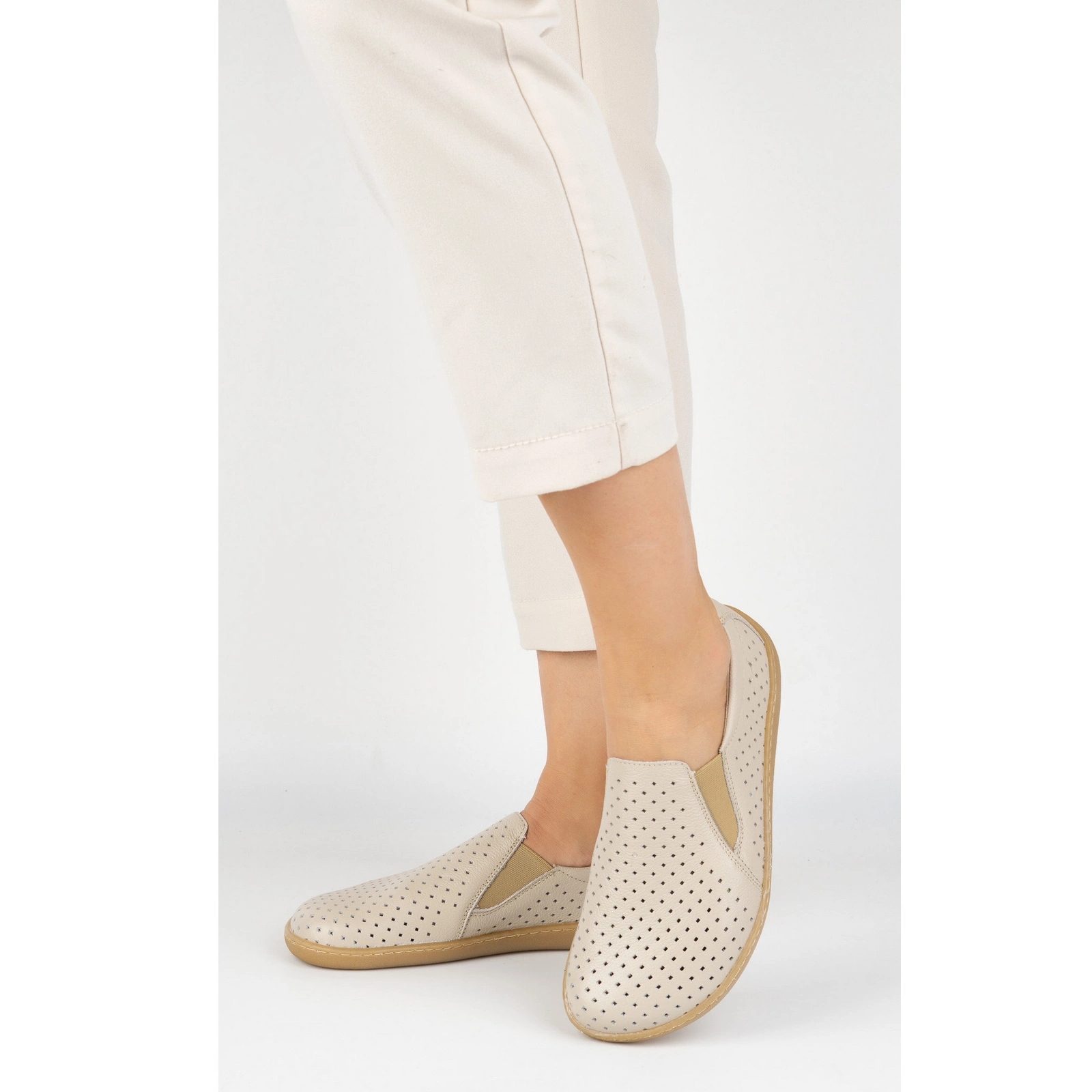 Detalles: Zapatos de cuero descalzo de cuero resbaló Pollonus Vanilia 5-130-022 beige