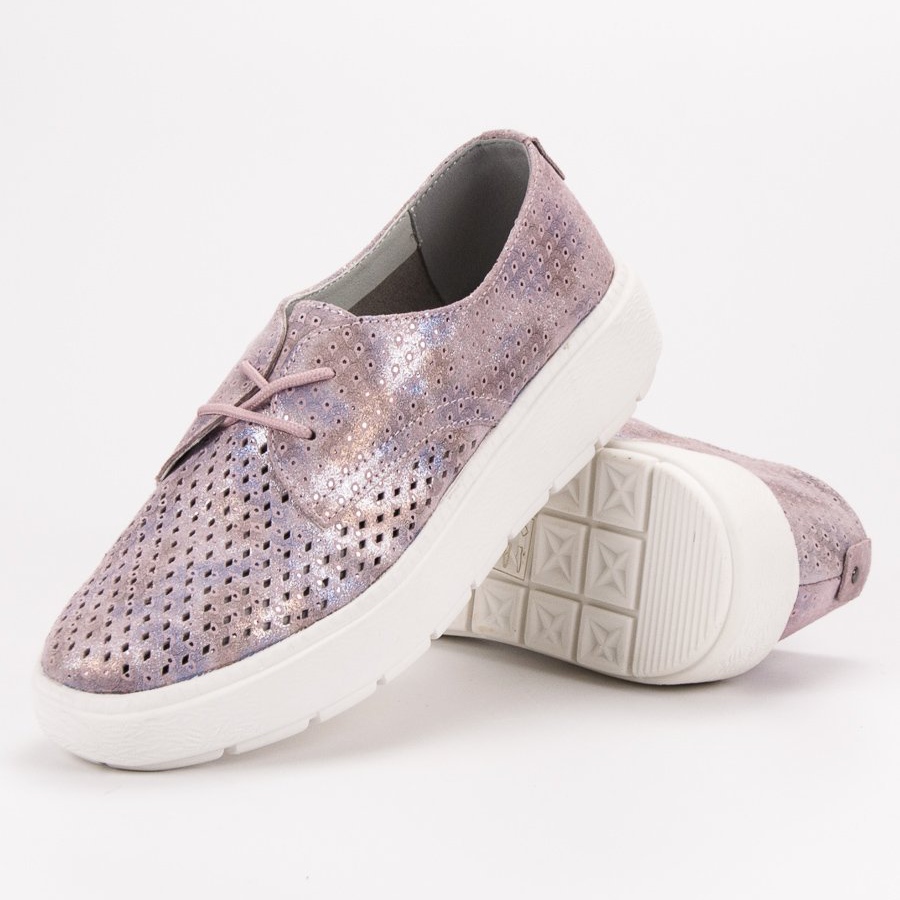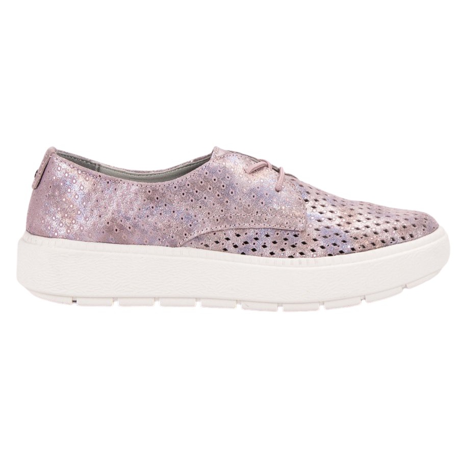 Disponibles en una hermosa combinación rosa y multicolor, estos modelos encajan perfectamente en el estilo casual y moderno, combinando perfectamente con trajes de primavera y verano. Gracias al patrón calado y a la ausencia de tacón, serán una solución ideal para el uso diario: para trabajar, pasear o reunirse con amigos.