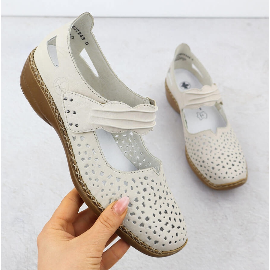 Rieker Zapatos de cuero para mujeres con velcro beige rieker 41399-14