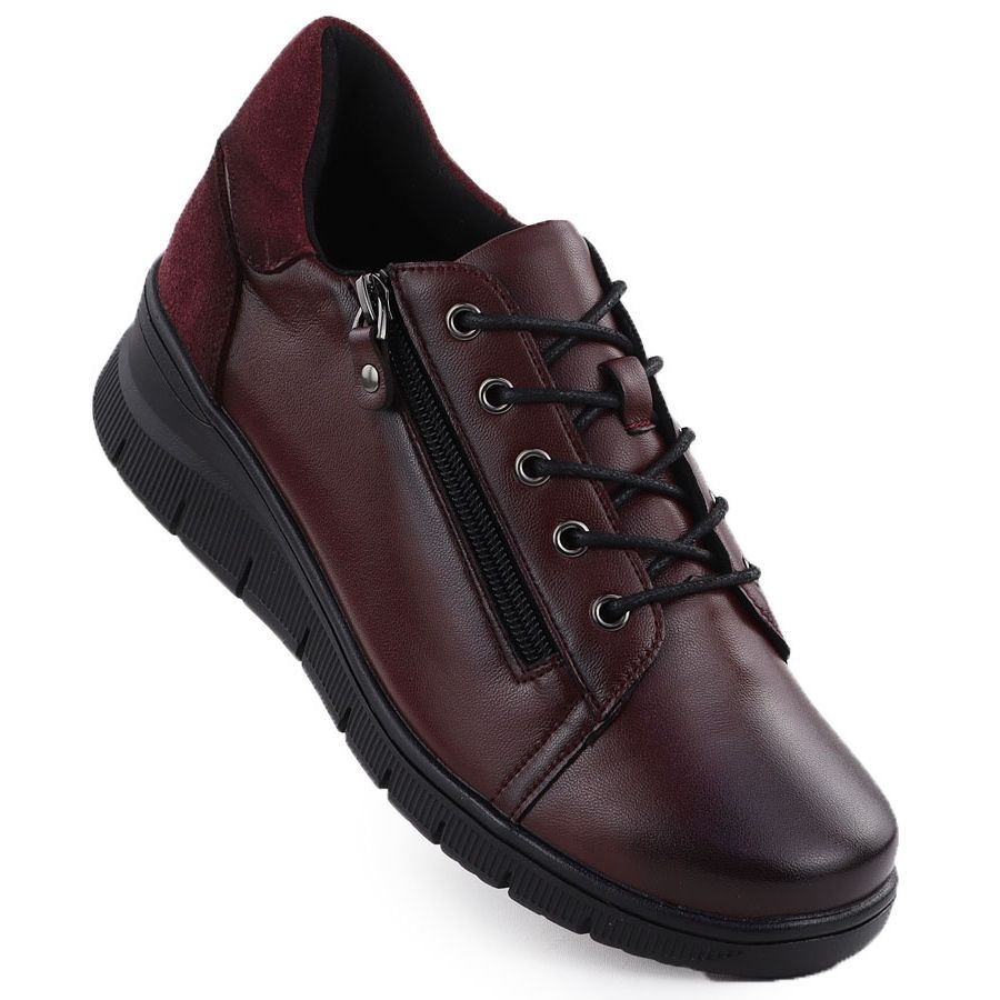 Este modelo se caracteriza por una plantilla de cuero suave que proporciona comodidad, incluso con una caminata larga. El revestimiento de tela hace que las piernas sean una sensación de libertad y comodidad. Los zapatos tienen un color burdeos, que encaja bien con las tendencias actuales, y su corte casual los hace ideales tanto a diario como en ocasiones más formales.