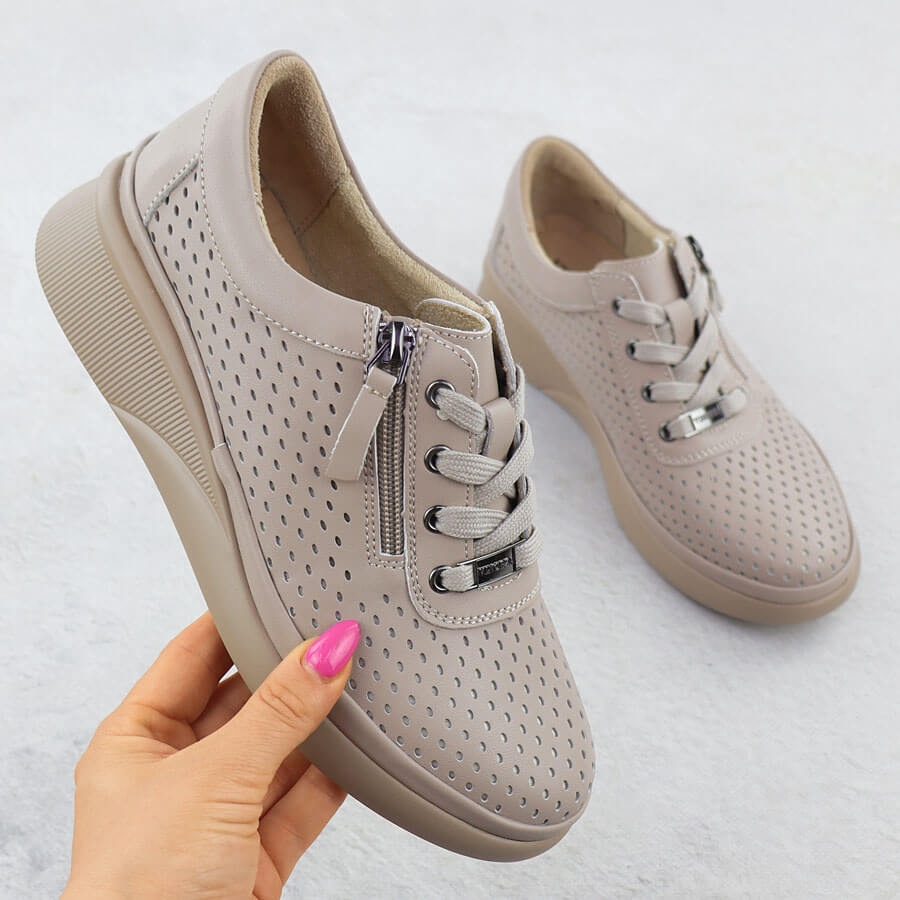 Gracias al inserto de cuero suave, los zapatos proporcionan comodidad incluso durante el uso largo, lo que los convierte en la opción perfecta para los días de primavera y otoño. La parte superior perforada les da ligereza y un carácter refrescante, perfectamente coincidente con varias estilizaciones, tanto informales como más elegantes.
