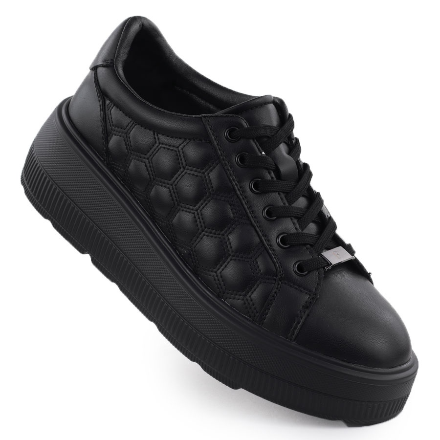 Meted en una cuña decorativa con una altura de 5,5 cm, estos zapatos son perfectos tanto para atuendos informales como deportivos. El color negro y el material exterior de cuero les dan un aspecto elegante que es fácil de combinar con diferentes artículos de vestuario. Dentro de los zapatos, se usaron un forro de tela y un inserto de cuero, lo que garantiza la comodidad de uso durante todo el día.