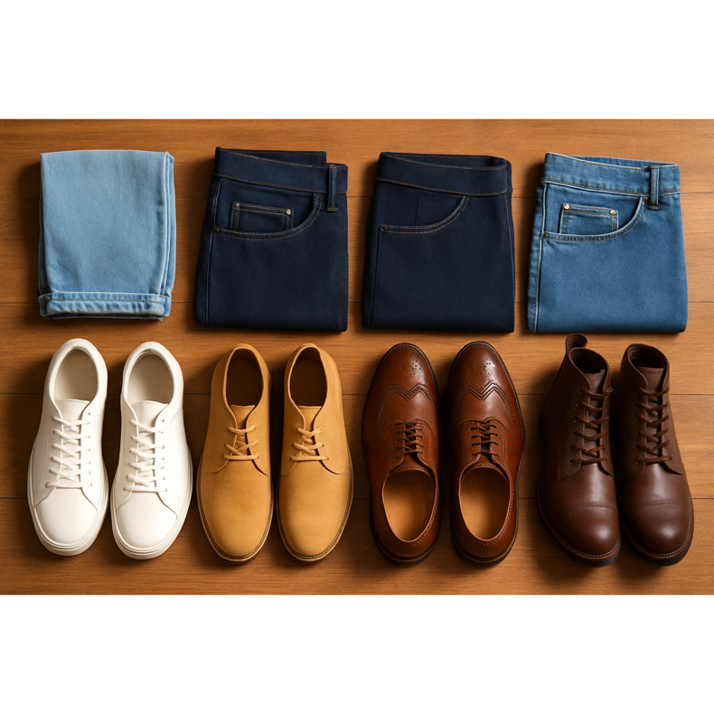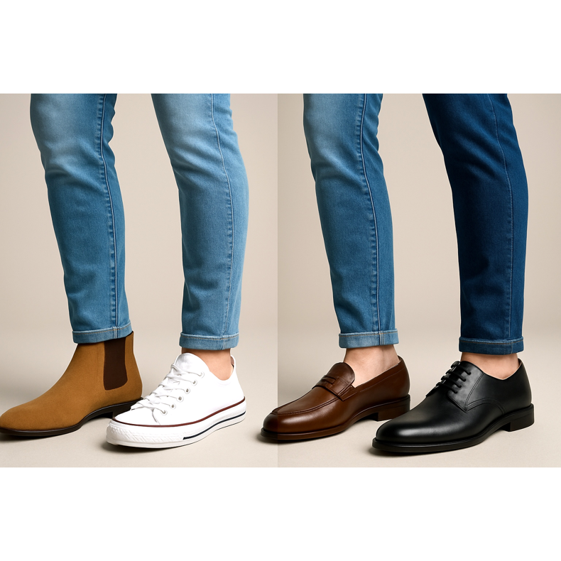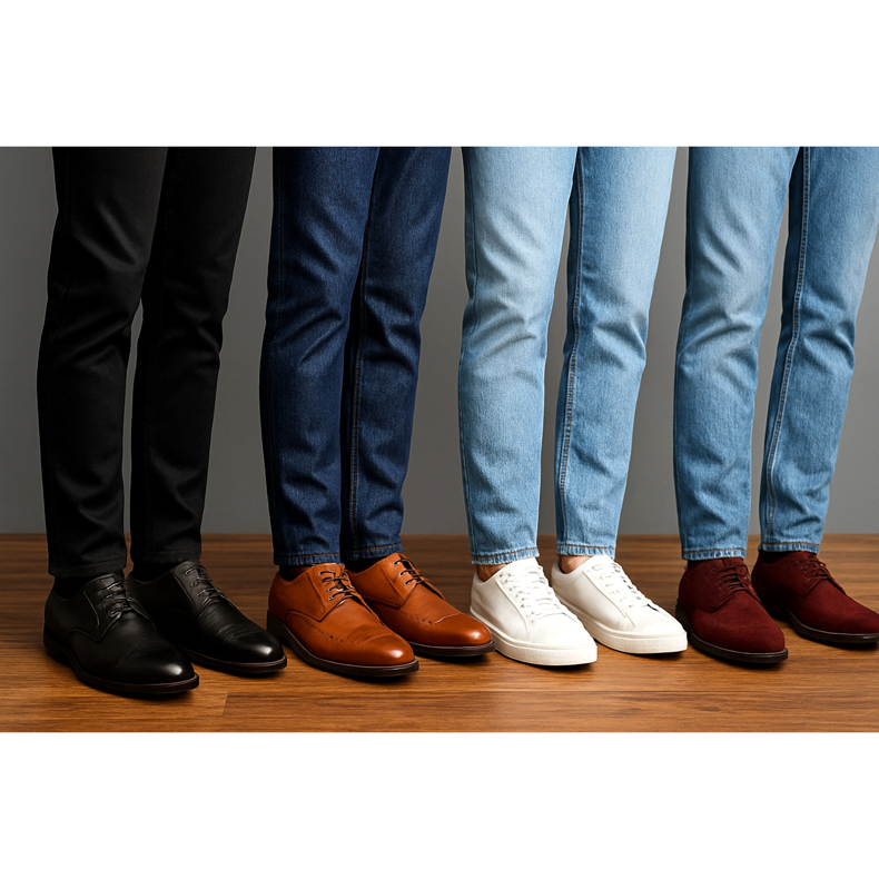 Una guía completa para seleccionar zapatos de hombre para varios estilos de jeans. Aprende las reglas del estilismo, desde el corte ajustado hasta el holgado, y descubre las combinaciones perfectas.