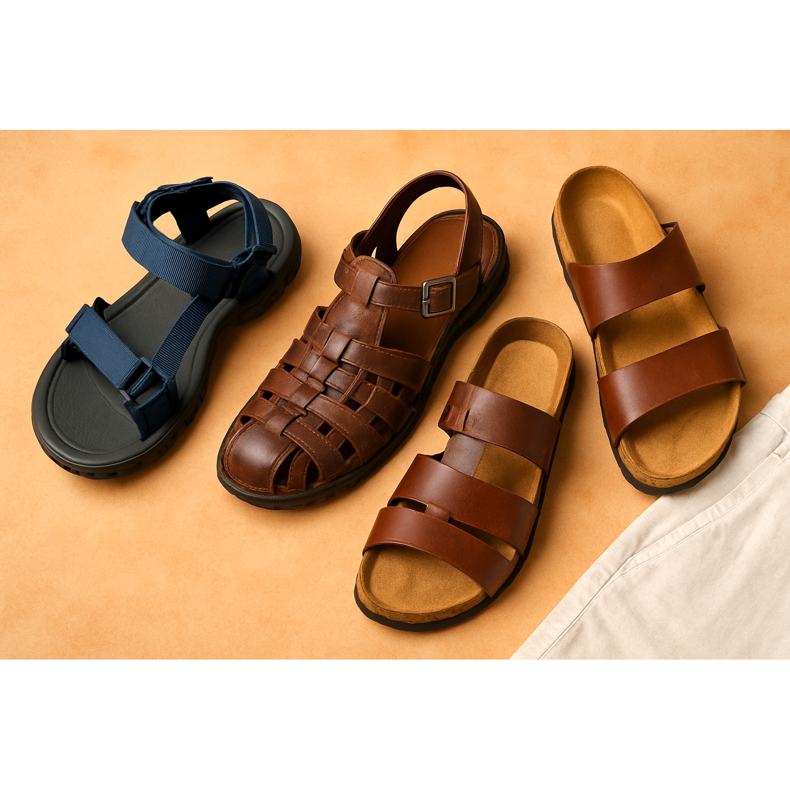 Las sandalias de hombre son el calzado de verano más aireado, perfecto para los días calurosos. Los modelos deportivos (Teva, Merrell, Keen) con correas ajustables y suela perfilada son perfectos para actividades al aire libre: senderismo, kayak, playa. Las sandalias de cuero minimalistas (Birkenstock, sandalias tipo chanclas) combinan con estilos urbanos informales: pantalones cortos, pantalones cortos, pantalones de lino. Las sandalias marineras confeccionadas en piel tejida son una opción elegante de verano con carácter mediterráneo. Llévalas descalzas o con calcetines invisibles. Elija sandalias ajustables para un ajuste y comodidad óptimos. Evite usar sandalias en la oficina con un código de vestimenta formal.