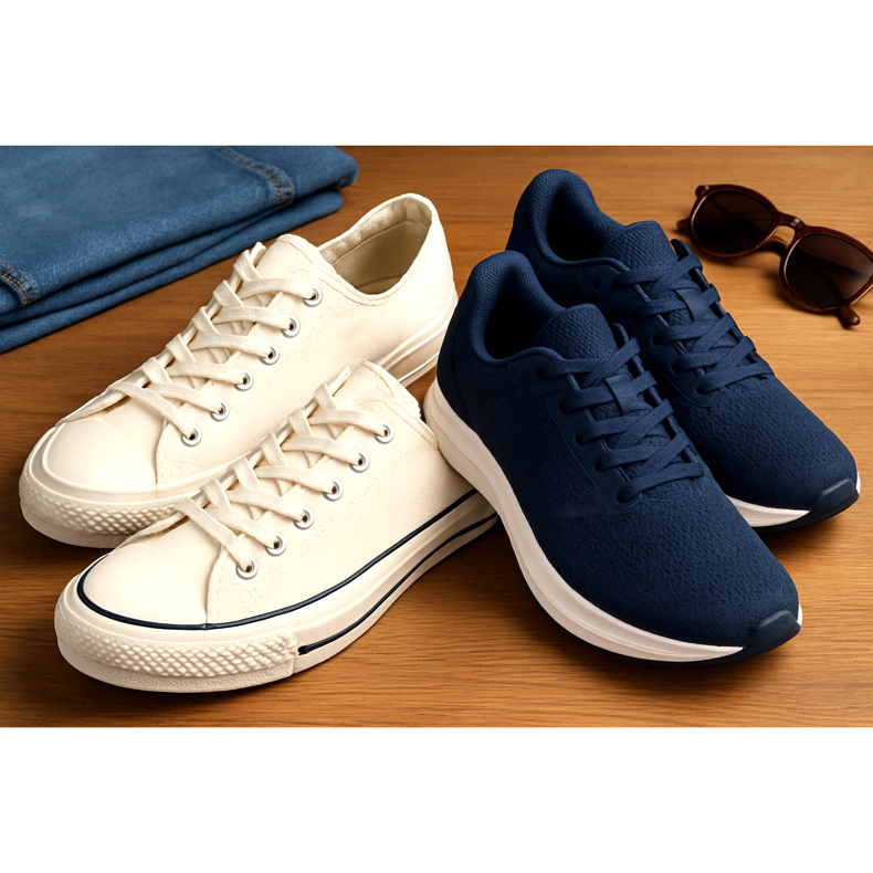 Las zapatillas de lona ligeras son la base del calzado informal masculino de verano. Converse, Vans, Keds de lona de algodón ventilada garantizan una buena circulación del aire. Disponible en versiones baja y alta, en colores desde el clásico blanco pasando por pasteles hasta tonos intensos. Úselo descalzo o con calcetines bajos. Fácil de cuidar: la mayoría de los modelos se pueden lavar a máquina (programas delicados). Las zapatillas de malla ofrecen una ventilación aún mejor gracias a la parte superior aireada hecha de material de malla. Popular en las líneas deportivas de Nike, Adidas, New Balance. Perfecto para actividad física en climas cálidos y uso diario.
