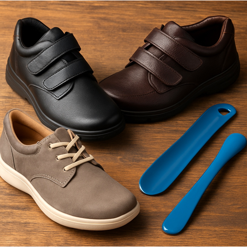 Zapatos con velcro, inserciones elásticas (botas Chelsea), sin cordones: facilitan su calce, especialmente si tiene problemas de movilidad.