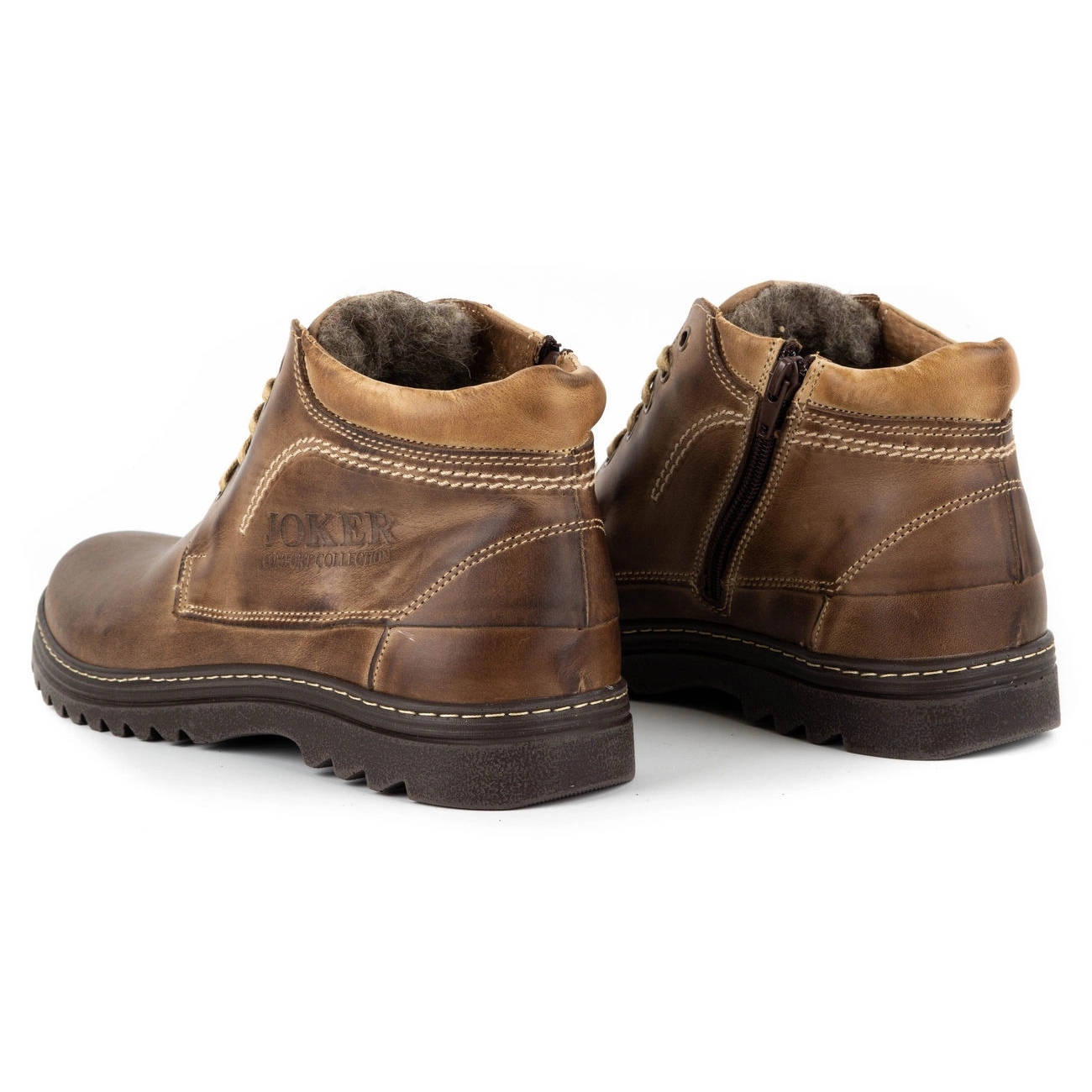 El producto son unos zapatos de invierno para hombre de la marca Joker, modelo 508J, color marrón. Los zapatos están aislados, lo que garantiza el máximo confort incluso en los días más fríos. Están fabricados en piel natural impermeable de alta calidad. La suela de los zapatos es maciza y aísla bien del frío del suelo, y su material es sintético. En el interior del calzado hay una plantilla natural y suave, aunque el fabricante no indica su material específico.