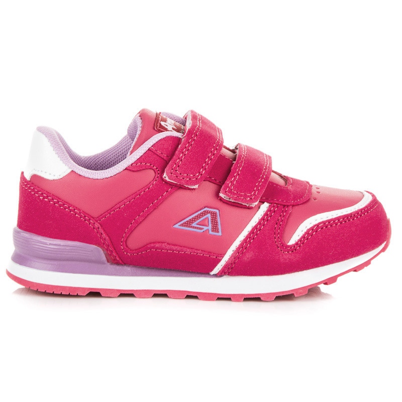 Zapatillas deportivas elegantes y prácticas de American Club en un tono rosa oscuro con inserciones violetas. Diseñado pensando en la comodidad y el uso diario: fácil de poner gracias a los cierres de cierre adhesivo, duradero y cómodo durante todo el día.