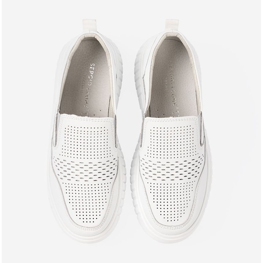 Hechos de cuero natural de la más alta calidad, estos zapatos aseguran no solo la durabilidad, sino también la comodidad de uso. El diseño de trabajo abierto les da ligereza y originalidad, y el color blanco los hace combatir perfectamente con las estilizaciones de primavera y verano. Construido en el talón rígido y una nariz redonda garantiza una bodega adecuada, lo que se traduce en comodidad todo el día.