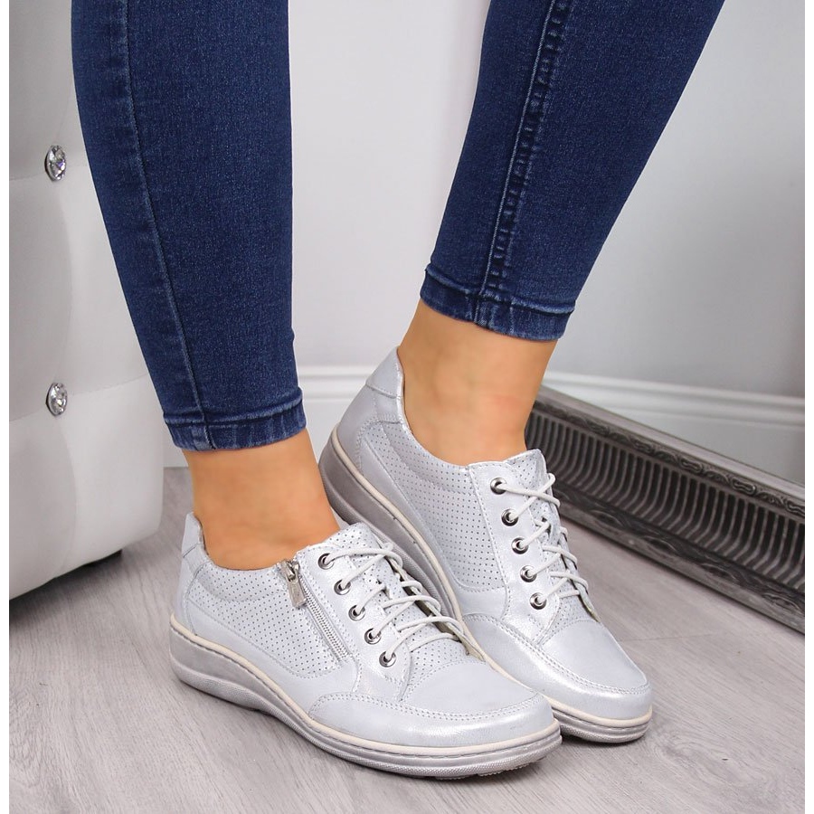 Detalles: Zapatos de mujer de piel con cremallera, plata Helios 357