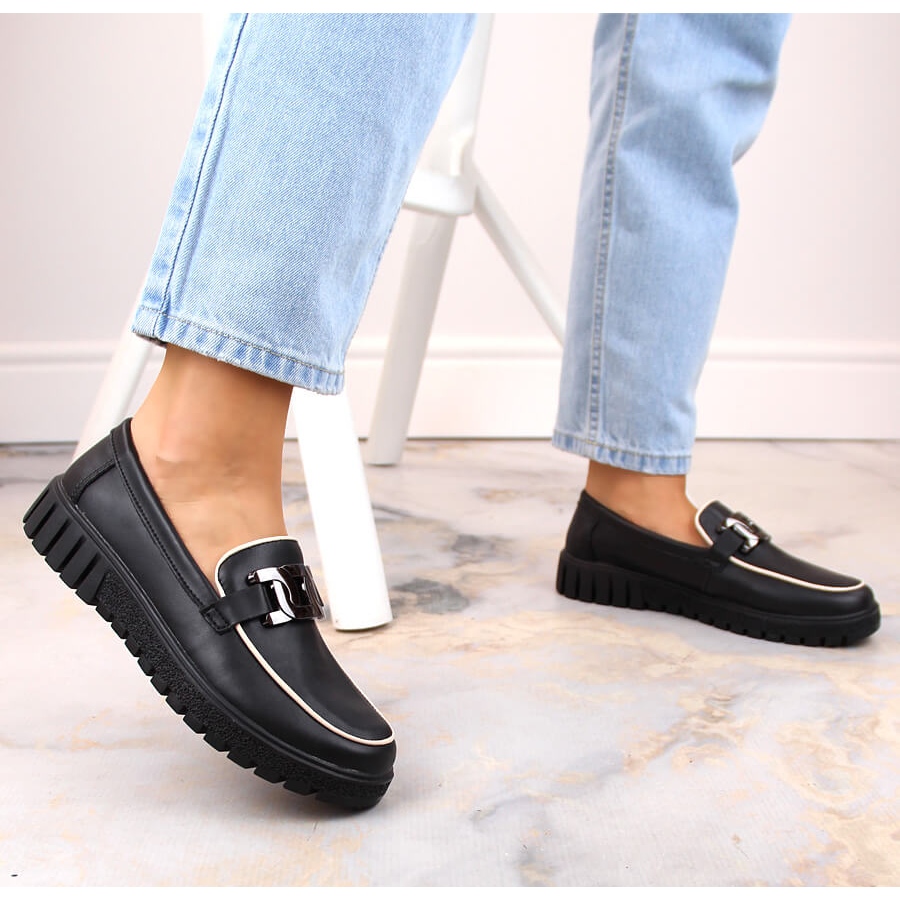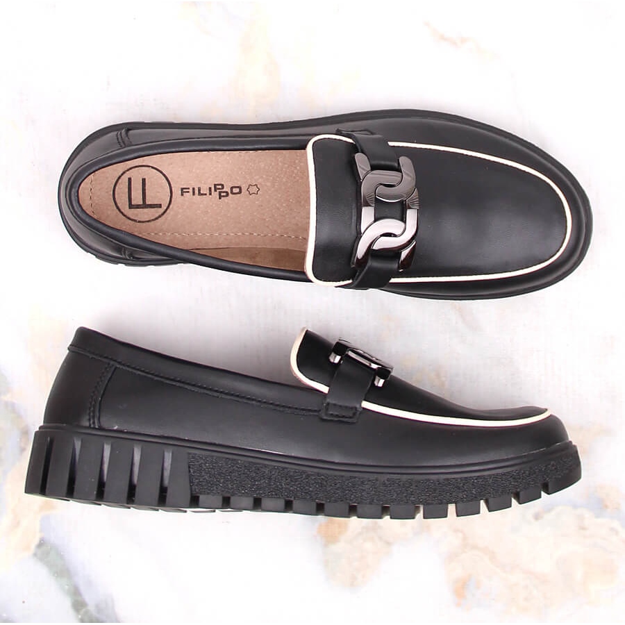 Detalles: Zapatos de mujer de piel negra con plataforma y cadena, Filippo DP4728 negro