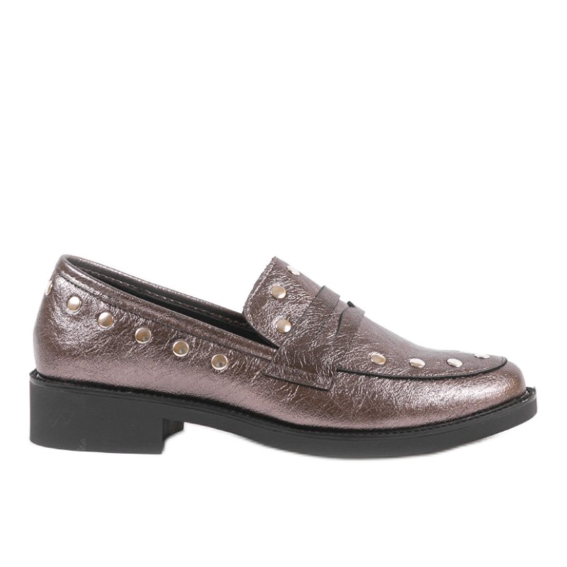 Te presentamos los zapatos de mujer grises C18-6297, que combinan elegancia y comodidad. Estos zapatos sin cordones, fabricados con un material similar al cuero de alta calidad, combinan perfectamente con las tendencias de moda actuales. Las inserciones decorativas redondas de metal les dan originalidad y un brillo sutil, lo que los convierte en un complemento perfecto para muchos estilos.