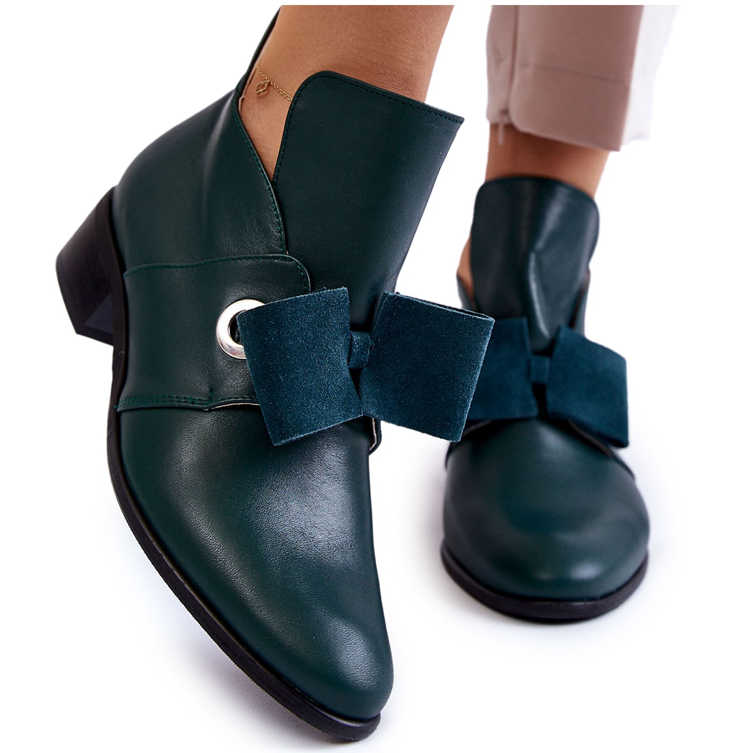 Detalles: Zapatos de piel con lazo de ante, verde.
