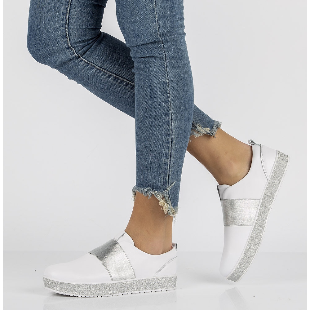 Estos zapatos blancos son universales y combinan perfectamente con varios estilos, tanto informales como un poco más elegantes. Debido a la falta de patrones, se pueden combinar fácilmente con otras prendas. El ancho G garantiza un ajuste adecuado al pie y la suela de plástico flexible proporciona la amortiguación necesaria.