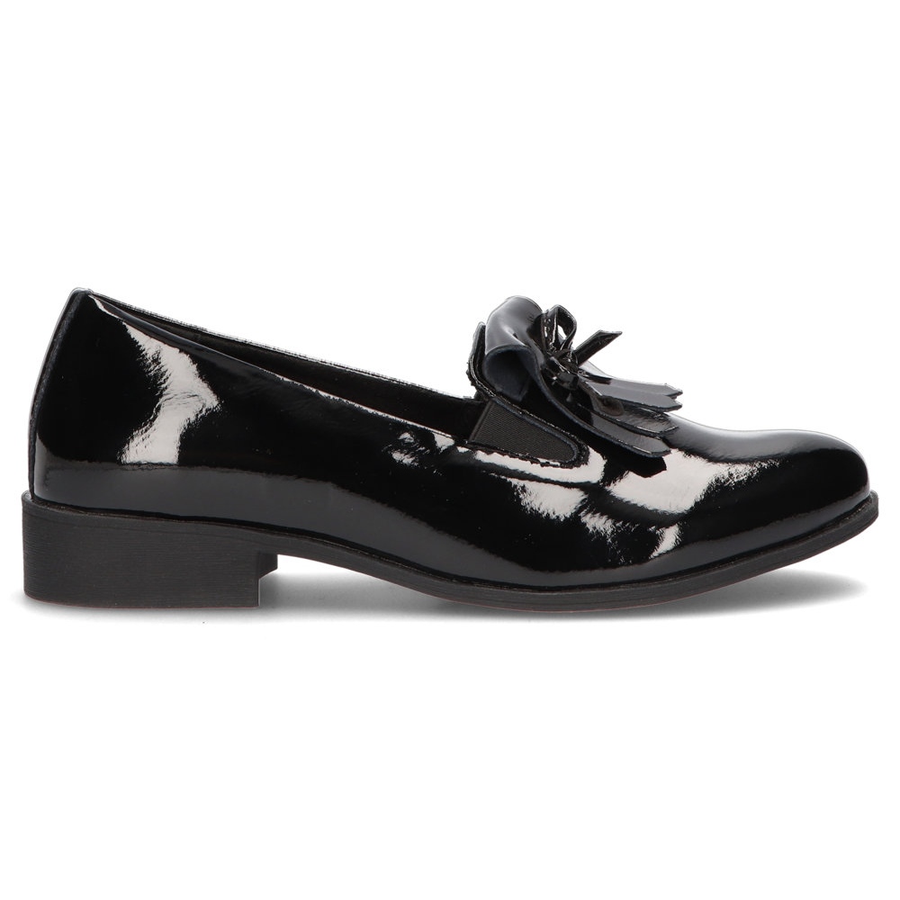 Este modelo se caracteriza por una puntera redonda y un tacón plano, lo que lo hace perfecto para el estilismo diario. El práctico cierre deslizante permite ponérselo y quitárselo fácilmente, y la parte superior alta (6 cm) les da un aspecto moderno. Además, llaman la atención los sutiles flecos y el acabado lacado, que aportan un carácter moderno a los zapatos.
