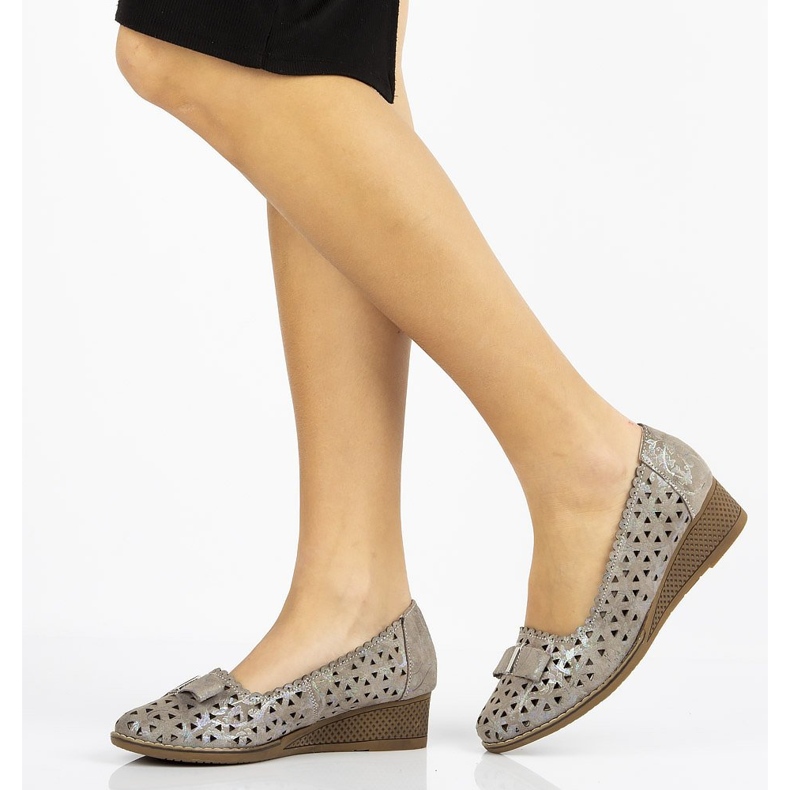 El modelo DP752/20 presenta un diseño sin cordones que facilita ponerse y quitarse los zapatos. La punta redonda y la cuña de 4,5 cm de altura hacen que los zapatos combinen bien con varios conjuntos, tanto con pantalones como con vestidos. Además, la suela marrón contrasta perfectamente con el color gris, dándole al conjunto un aspecto clásico.