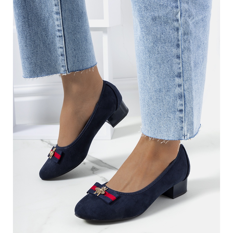 Las bombas Vijver deleitan con la calidad de la mano de obra y los detalles. ¡La cinta azul marino y roja con una pajarita decorativa se ve increíble! La parte superior está hecha de cuero de ante ecológico. Un pequeño tacón acentuará delicadamente la figura ;) La plantilla de piel nos aportará comodidad durante su uso. Numeración estándar, siga su tamaño.