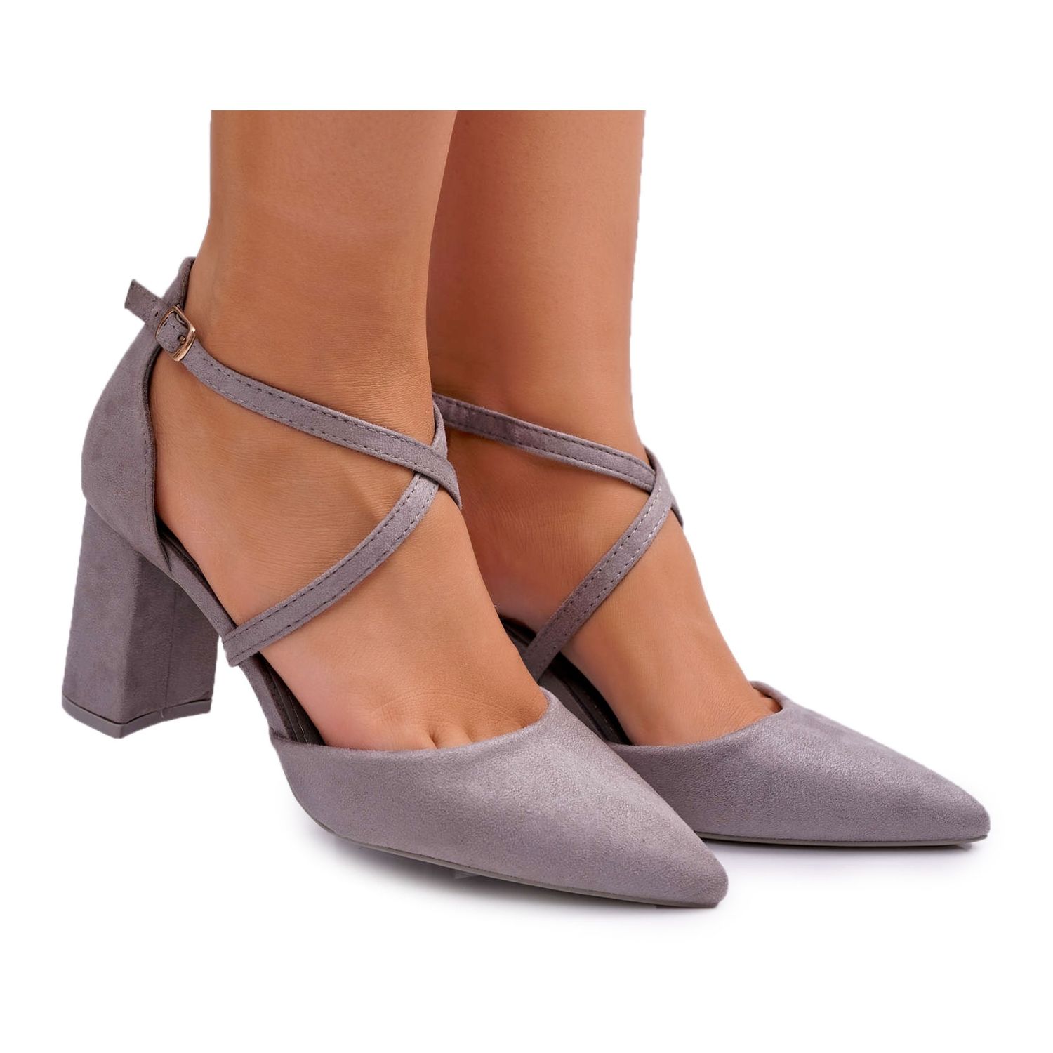 Las bombas de mujeres en el pilar en el Spitz: gris, gamuza, con un corte atemporal, que completará una elegante estilización para la oficina y para las salidas solemnes. El modelo incrustado en un pilar estable de 8 cm da forma perfectamente a la silueta, y el inserto de confort suave proporciona comodidad durante todo el día. Hecho de cuero ecológico de gamuza, terminado con un inserto ecológico: estilo y preocupación por la comodidad van de la mano.