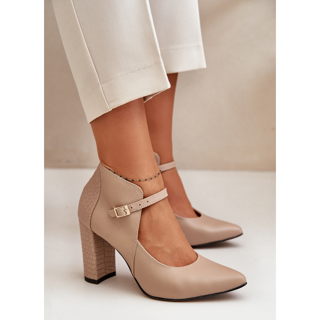 Detalles: Zapatos De Salón De Piel Con Puntera En Punta Y Tacón Alto Beige Laura Messi 2832