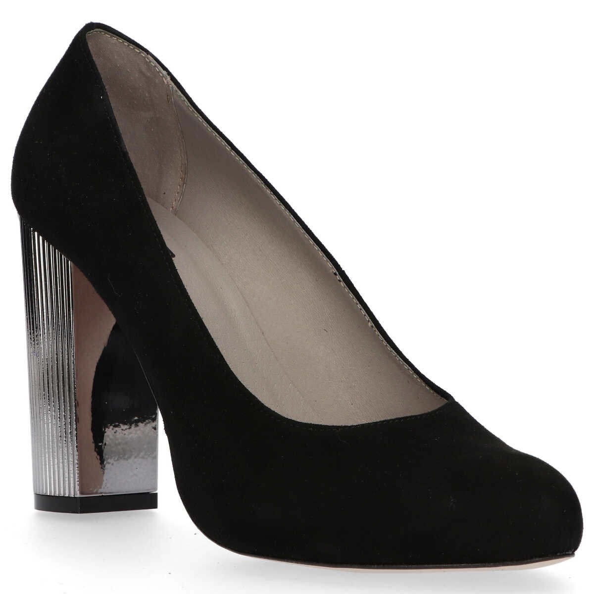 Los salones Filippo 1440 en ante negro son una elección perfecta para toda mujer elegante que valora la combinación de comodidad y estilo. Fabricado en piel natural de alta calidad, tanto la parte exterior como el forro garantizan durabilidad y comodidad de uso. Este modelo se caracteriza por una punta sutil y redonda que aporta encanto, y la altura del tacón de 10 cm adelgaza la silueta.