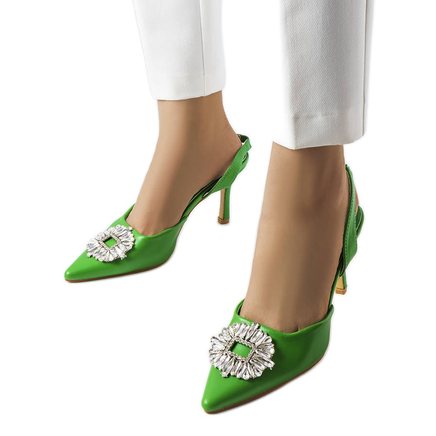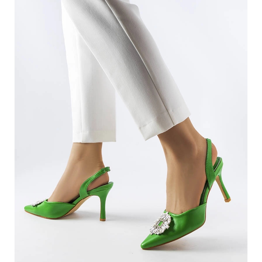 Tacones verdes altos con circonitos Moïse - Elegancia en una edición intensiva. La nariz clásica y puntiaguda y el tacón alto enfatizan la figura, y las delicadas diamantes de imitación en la parte superior agregan brillo, perfecta para salidas nocturnas, bodas y ocasiones especiales en el entorno de temporada de verano.