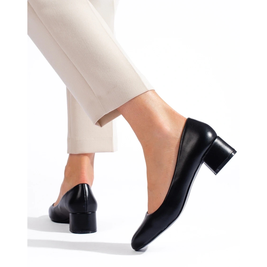 Los zapatos de salón fabricados con cuero ecológico de alta calidad no sólo son estéticos, sino que también demuestran la preocupación del fabricante por la ecología. Aunque no están hechos de cuero natural, su acabado y su aspecto clásico y elegante en negro universal les confieren un aspecto único. El tacón de 4 cm de altura combina elegancia con comodidad, permitiéndote llevar los zapatos durante todo el día sin preocuparte por el cansancio o las molestias.