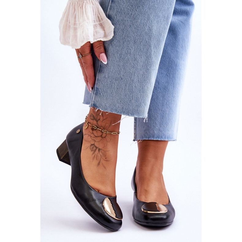 Los zapatos de salón se caracterizan por un diseño minimalista, en la parte delantera están decorados con un sutil elemento decorativo en forma de círculo, que les aporta elegancia. La suave plantilla de piel natural garantiza un perfecto ajuste y comodidad, lo que las hace perfectas para diversas ocasiones, tanto para la oficina como para reuniones sociales.