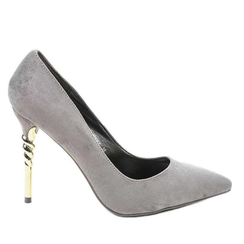 Lo más destacado es el impresionante tacón de aguja de 11 centímetros fabricado en material dorado. No sólo contrasta perfectamente con el color gris claro de la parte superior, sino que su original acabado rizado llama la atención, añadiendo un poco de extravagancia.