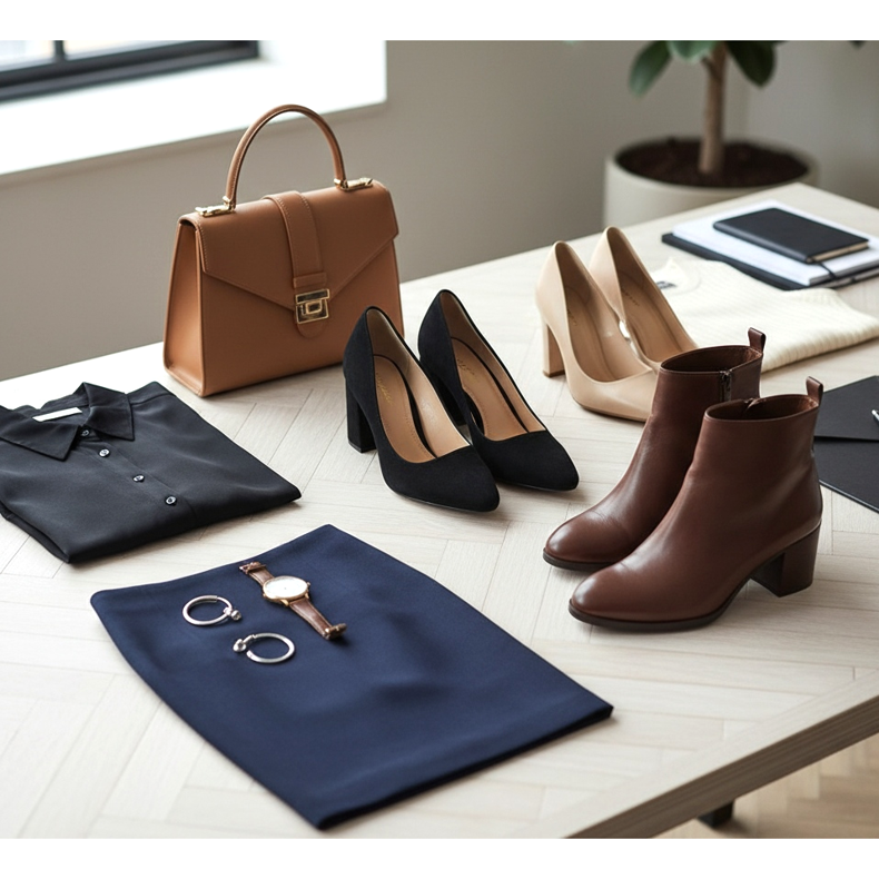 Zapatos elegantes para top y falda para la oficina.