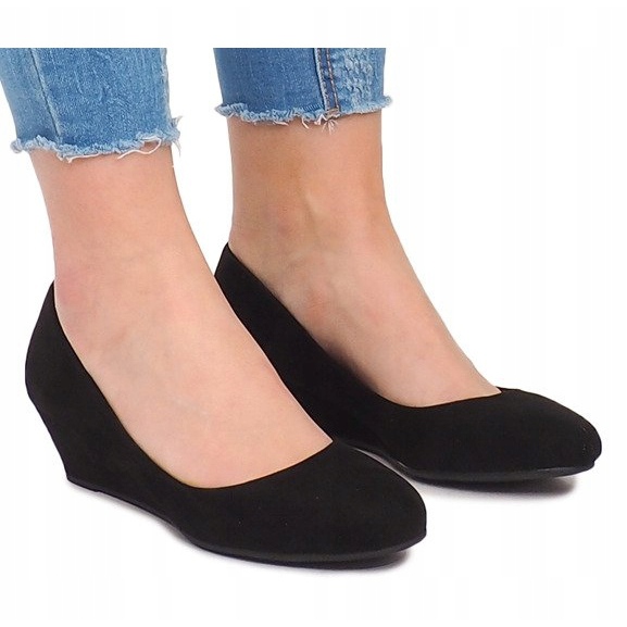 Inna marka Zapatos de tacón de ante con cuña MB188-48 Negro