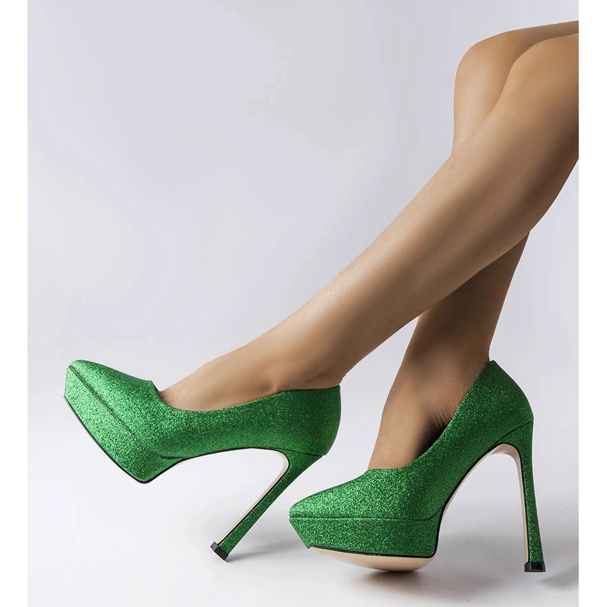 Detalles: Zapatos de tacón Proulx con purpurina verde