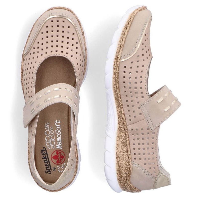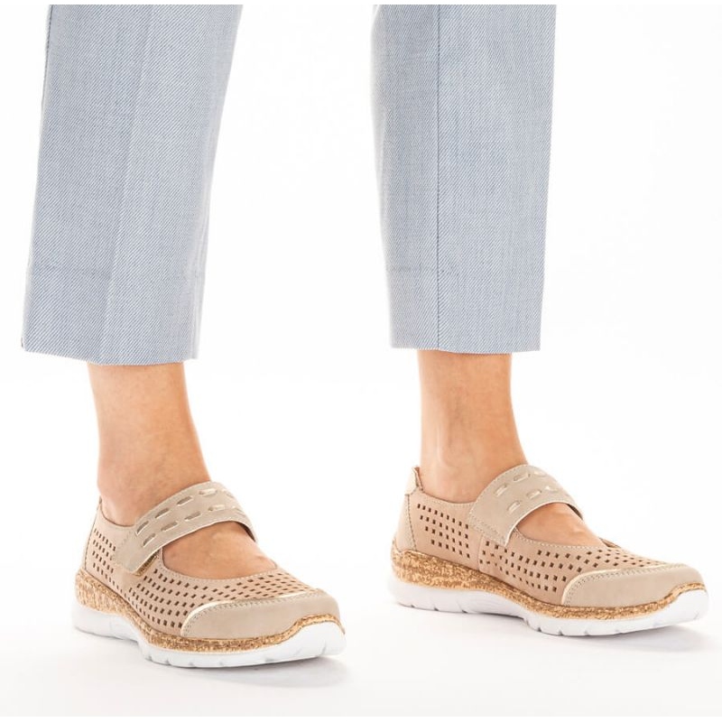 Detalles: Zapatos de verano de piel con velcro Rieker W RKR582 beige