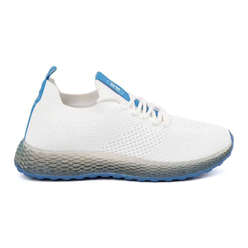 Hecho de materiales textiles de alta calidad, los zapatos son ligeros y transpirables, lo que garantiza la comodidad incluso durante los días intensos. La parte superior blanca clásica combinada con una suela azul en vivo les da un personaje fresco y dinámico, ideal para personas que valoran la moda y la funcionalidad.
