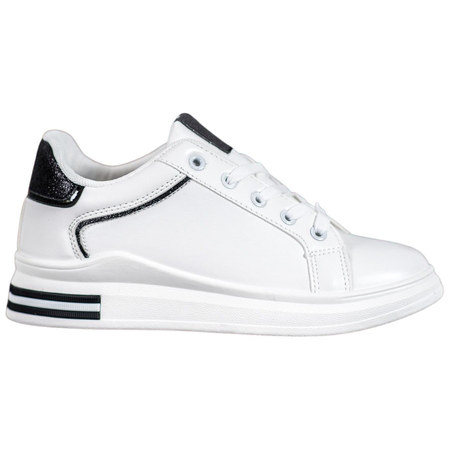 El acabado blanco del modelo está sutilmente resaltado con inserciones negras, lo que les da un carácter original. La puntera redonda y el suave talón incorporado garantizan comodidad y libertad de movimiento, y la suela sintética con dibujo proporciona un excelente agarre.