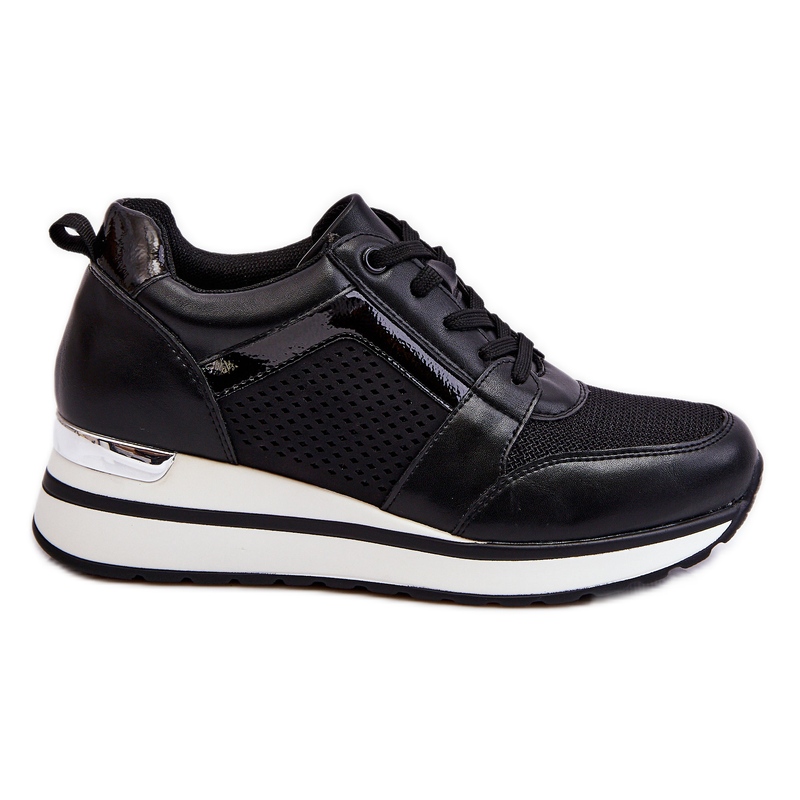 Detalles: PG1 Zapatos deportivos de cuero negro con cuña baja Braylen