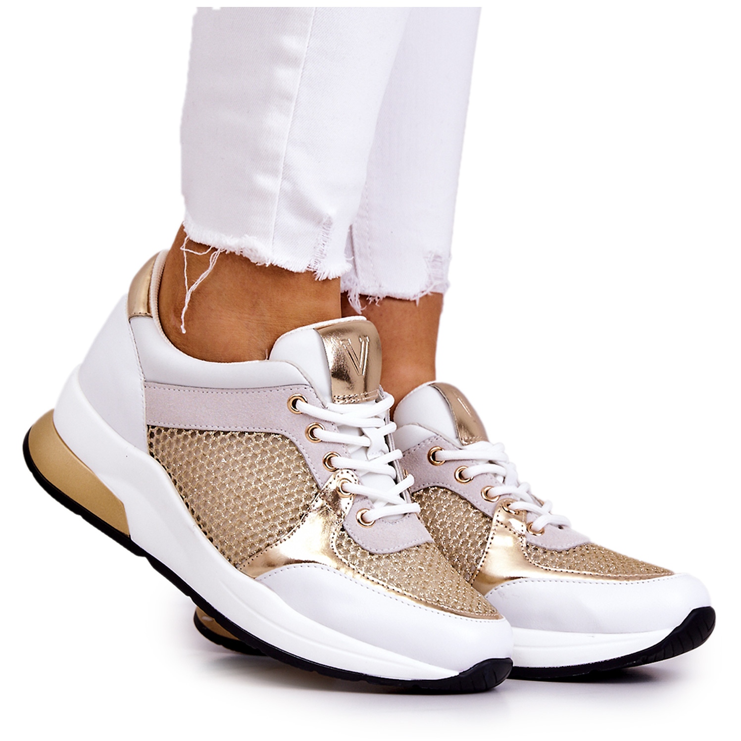 Detalles: Vinceza Zapatos deportivos de moda Zapatillas de mujer Blanco y dorado Danielle